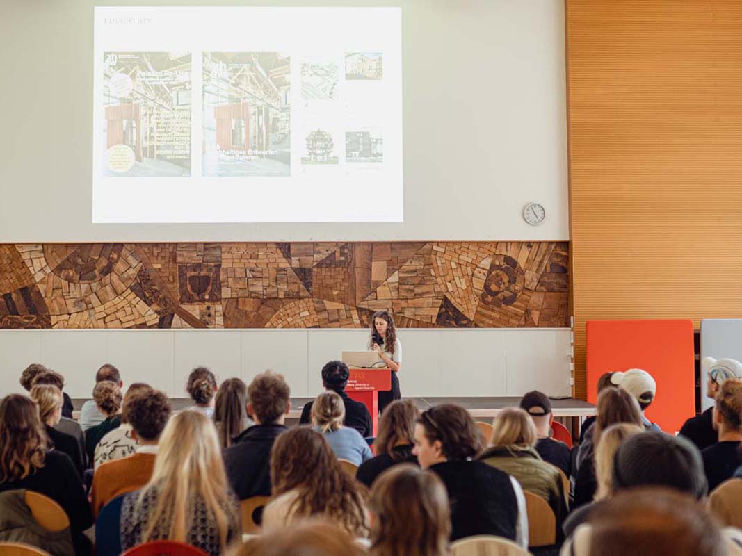 Des étudiants de la Haute école spécialisée d’Augsbourg ont organisé une conférence sur le thème du Re-Use, avec comme invités Yayun Liu (MVRDV), Falk Schnemann (KIT) et Michelle Schneider (ZHAW).